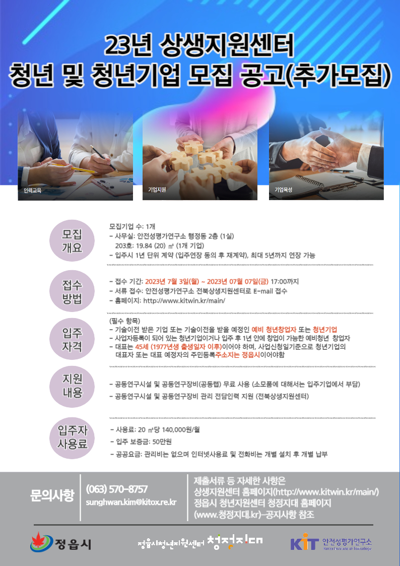 (우) 56212 전라북도 정읍시 백학1길 30 안전성평가연구소 전북분소 행정동 2층 전북상생지원센터 TEL: 063-570-8757 Email: sunghwan.kim@kitox.re.kr